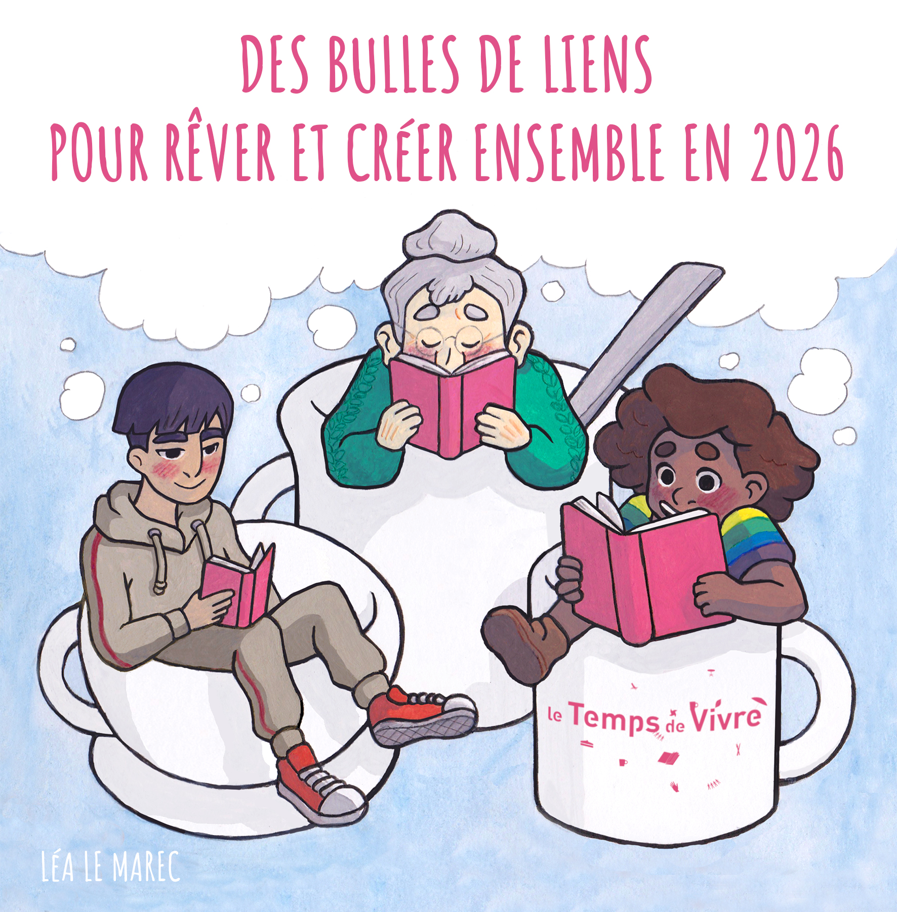 [La carte de voeux 2026 a été réalisée par Léa Le Marec, dessinatrice, qui a exposé au Temps de Vivre en avril 2025]