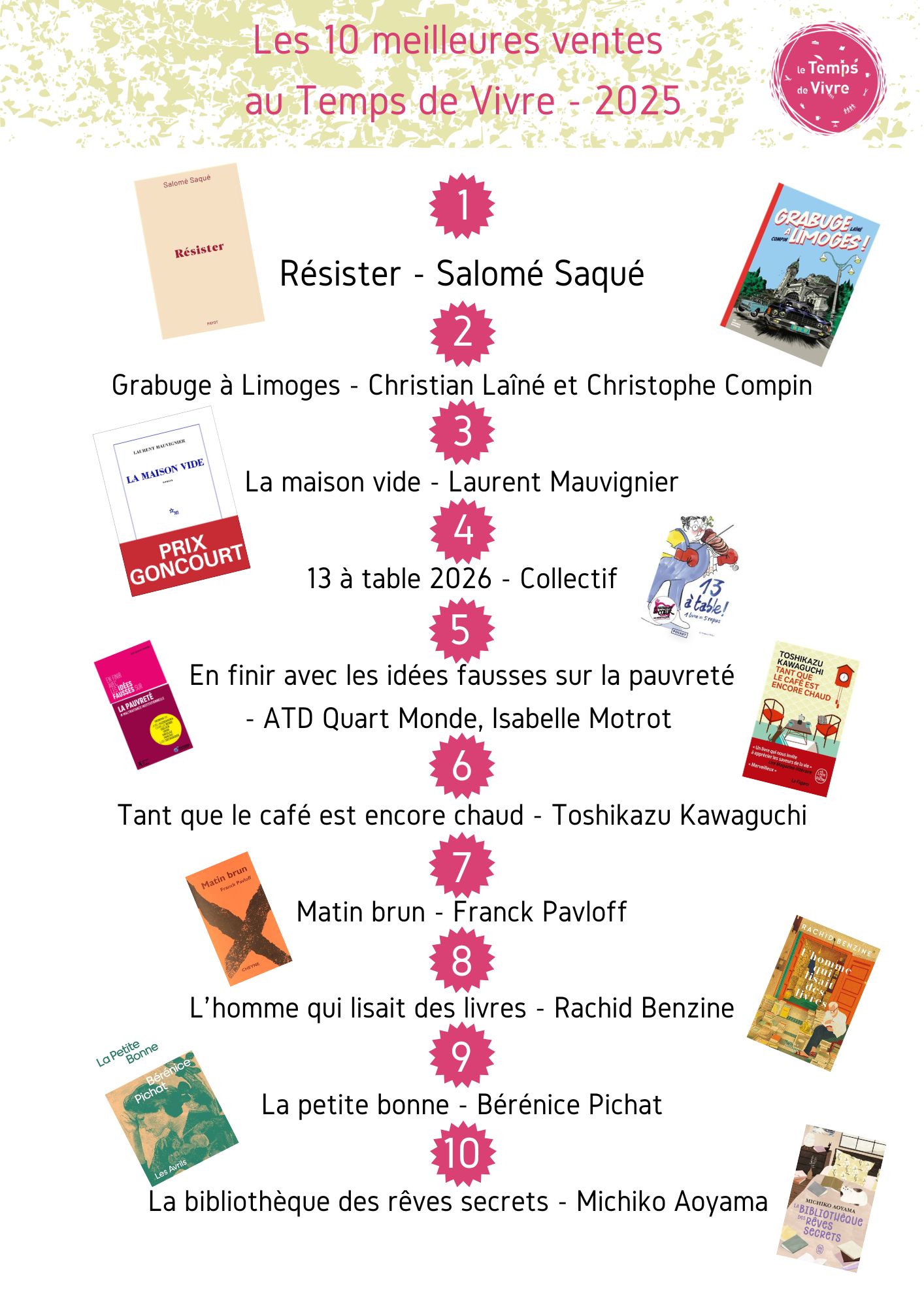 Le palmarès attendu chaque année ; le top 10 des livres les plus achetés au Temps de Vivre !
